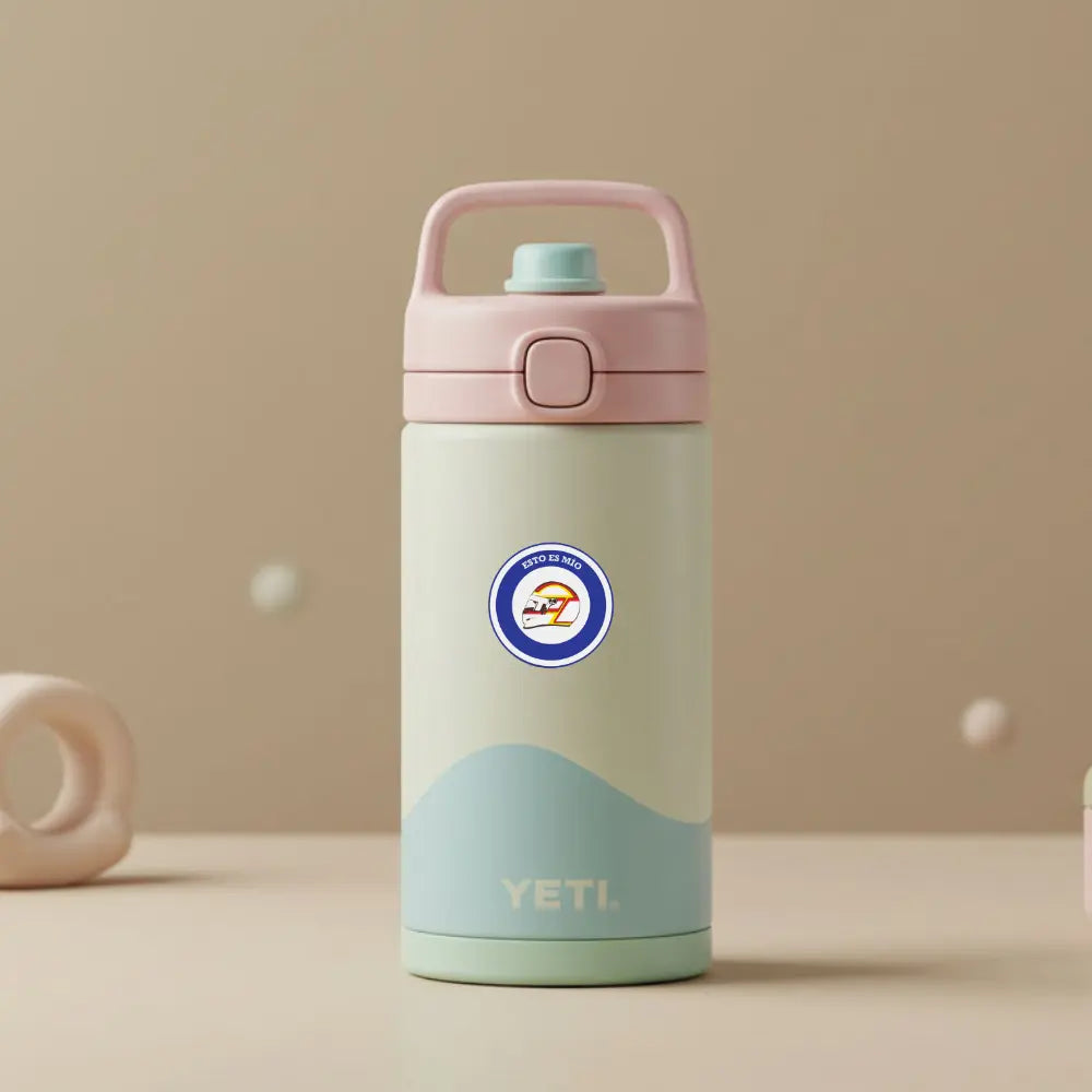 Sticker con diseño de casco y nombre personalizable. Puedes escoger entre planchable para ropa y mochilas, o impermeable para botellas, loncheras y útiles escolares. Durable y resistente al uso diario.