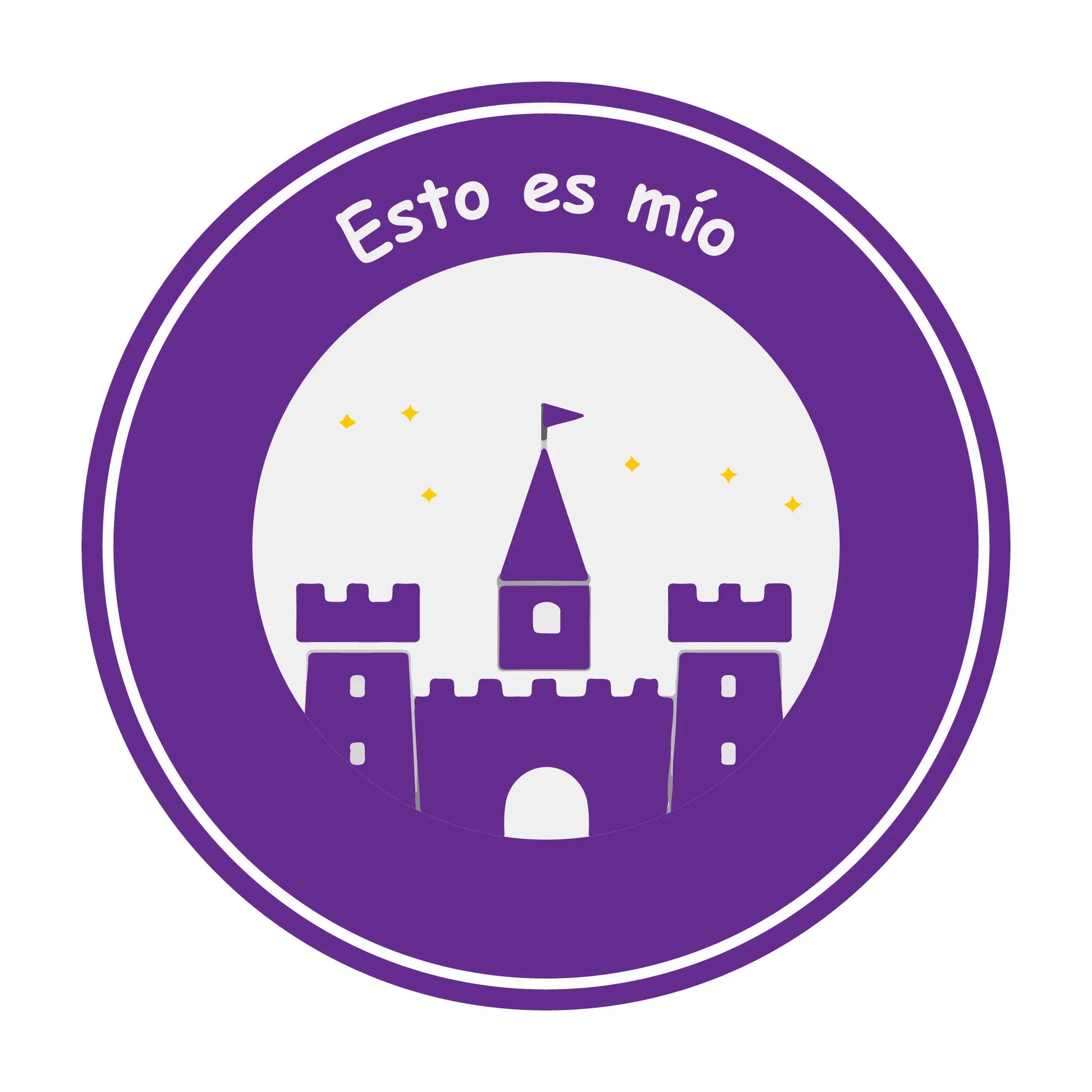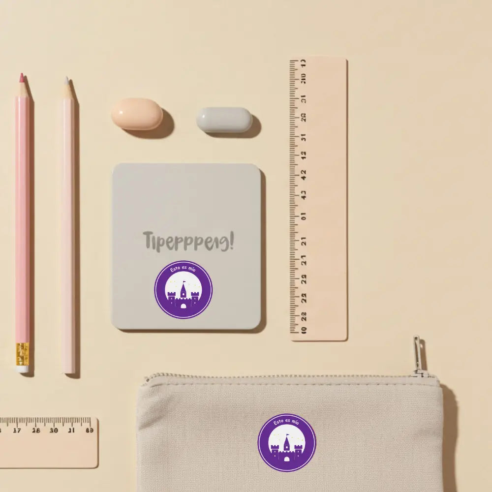 Labels con diseño de castillo y nombre personalizable. Puedes escoger entre planchable para ropa y mochilas, o impermeable para botellas, loncheras y útiles escolares. Durable y resistente al uso diario.