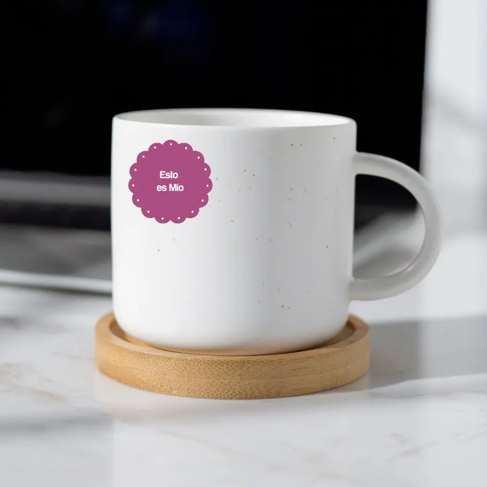 Labels con diseño de flor redondeada y nombre personalizable. Disponible en versión planchable para ropa y mochilas, o impermeable para botellas, tazas, frascos y útiles escolares. Resistente, duradero y perfecto para organización o uso diario.