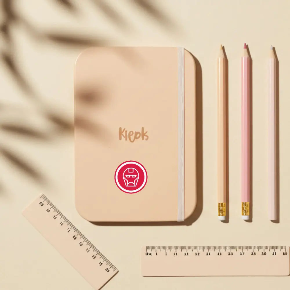 Sticker con diseño inspirado en Iron Man y nombre personalizable. Puedes escoger entre planchable para ropa y mochilas, o impermeable para botellas, loncheras y útiles escolares. Durable y resistente al uso diario.